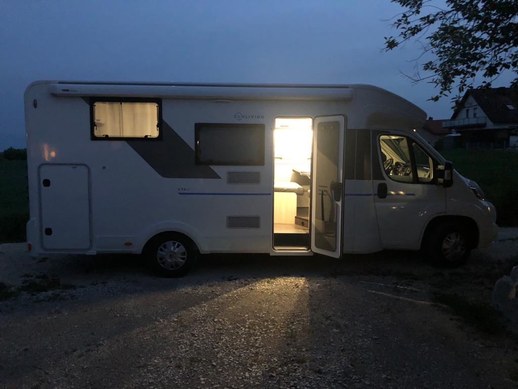 Mit dem großen Alkoven bleiben keine Wünsche offen. Denn mit festen 4 Schlafplätzen kannst Du als Familie oder Gruppe komfortabel verreisen. Die Sitzgruppe lässt sich sogar noch zu weiteren Schlafplätzen erweitern. An Stauraum fehlt es Camper Prenzlauer Berg nicht, so dass Du all Euer Gepäck gemütlich unterbringen kannst. Schau Dir hier eine Videotour durch das Wohnmobil mit all seinen Funktionen an.