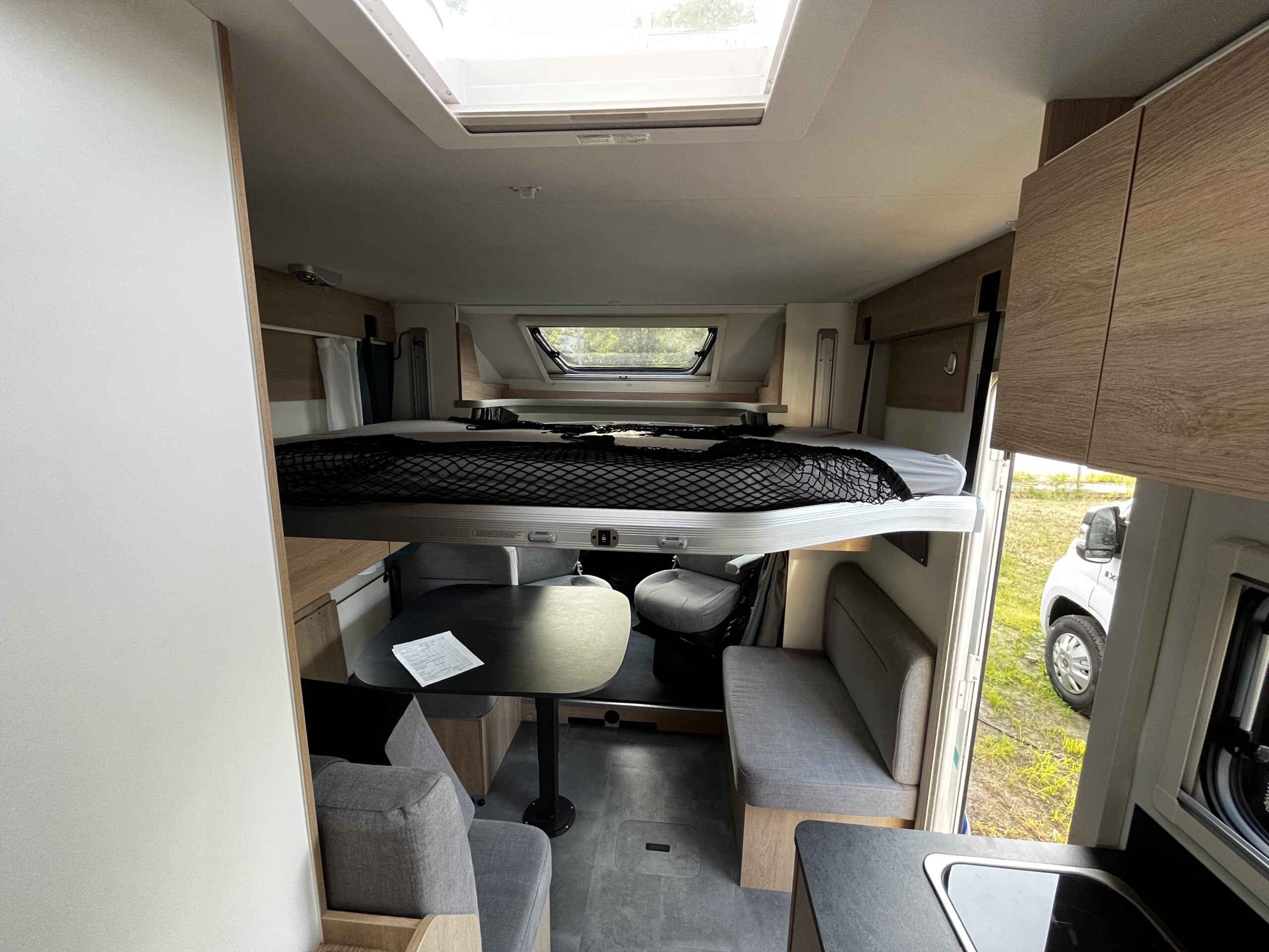Der kleine Alkoven bietet mit seinen 4 Sitzplätzen und 2 großen Betten für 4 Schlafplätze genug Raum für den Familienausflug.