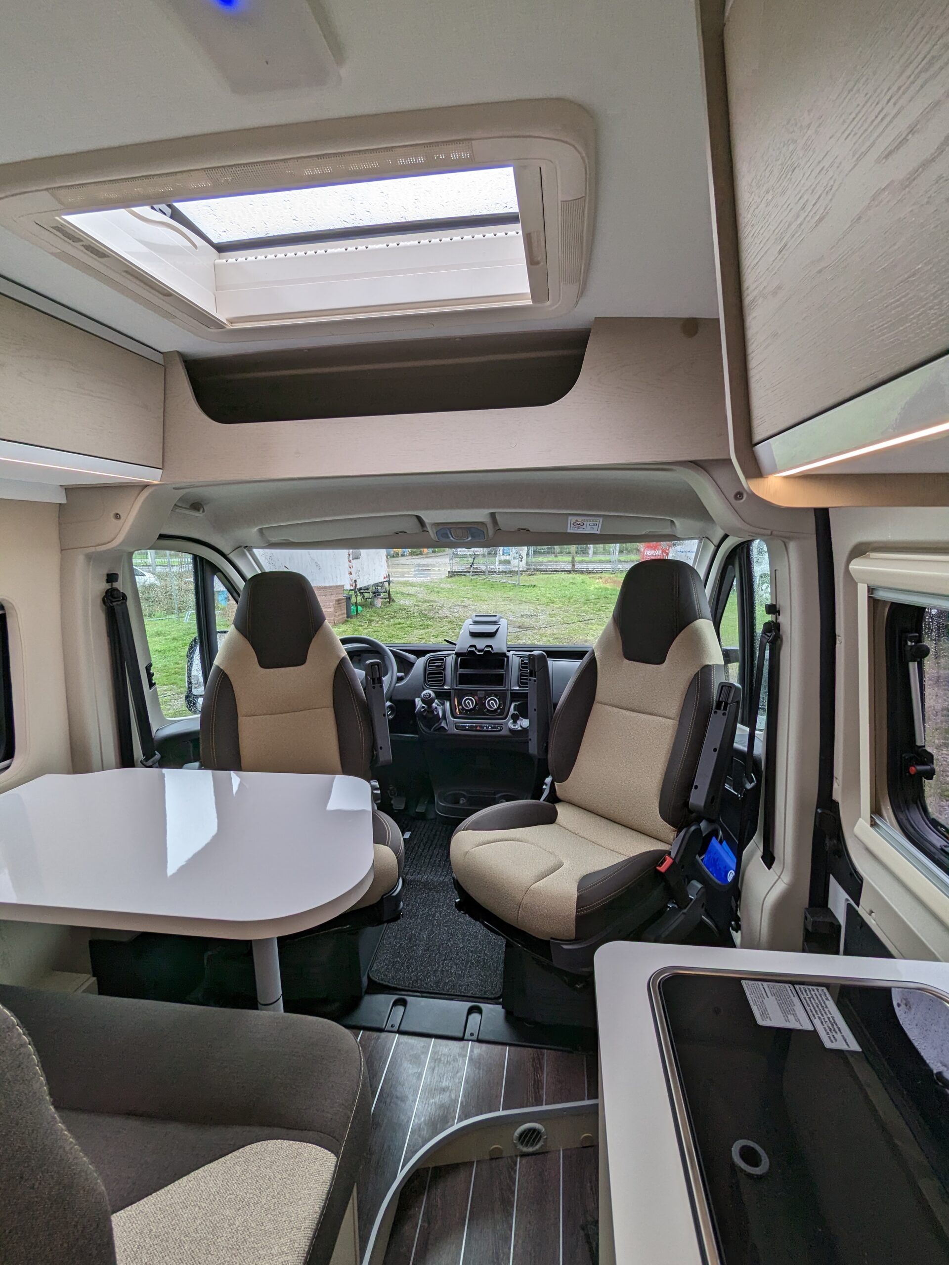 Mit 5 Sitzplätzen, Solar und 5+1 Schlafplätzen bietet dieser ausgefeilte Teilintegrierten Flexibilität und Raum.