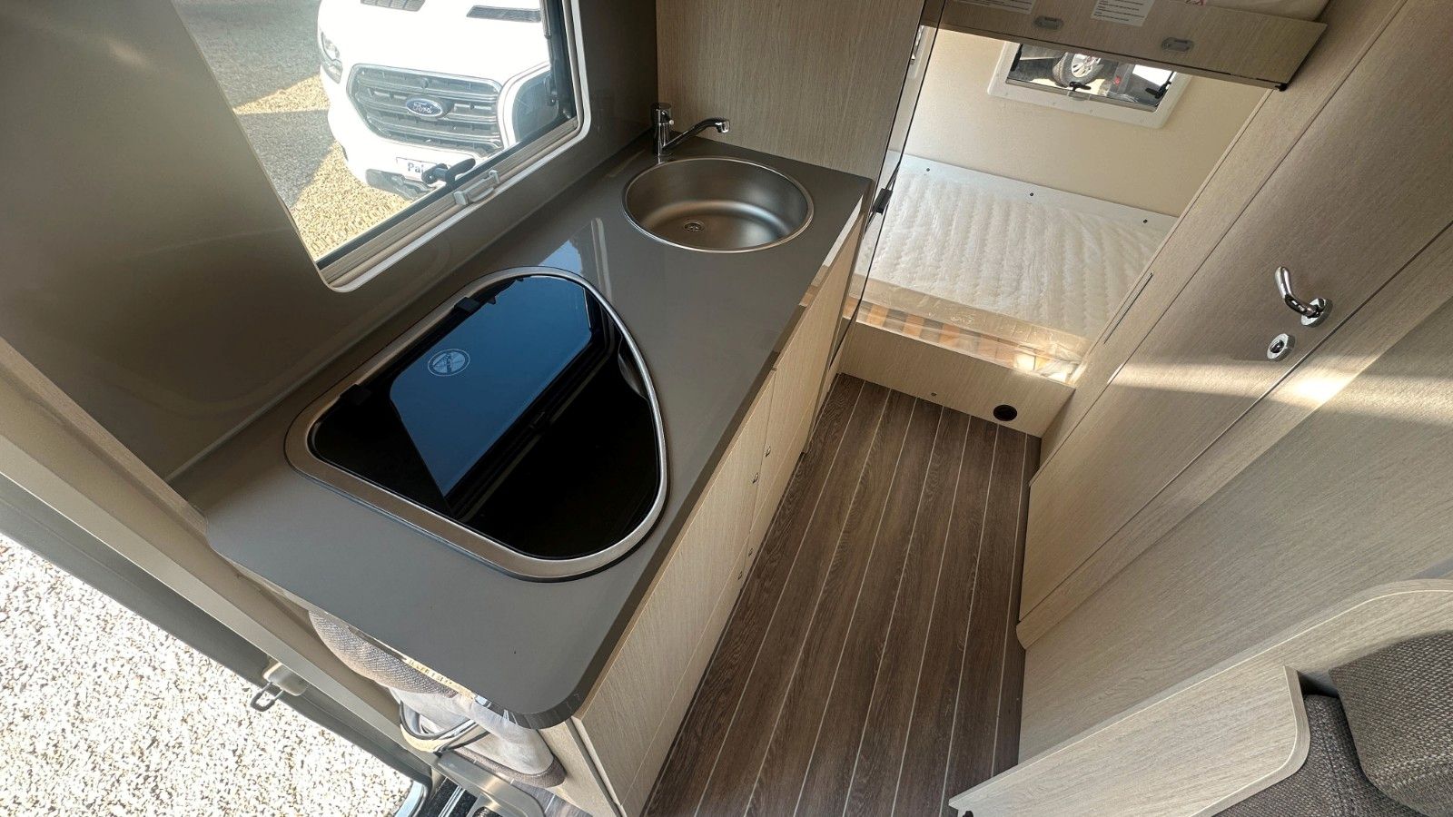 Dieser Kastenwagen bietet mit seinen 2+2 bequemen Schlafplätzen im Querbett und großem Gepäckbereich mehr als genug Raum für spritzige Ausflüge, ideal für Pärchen.